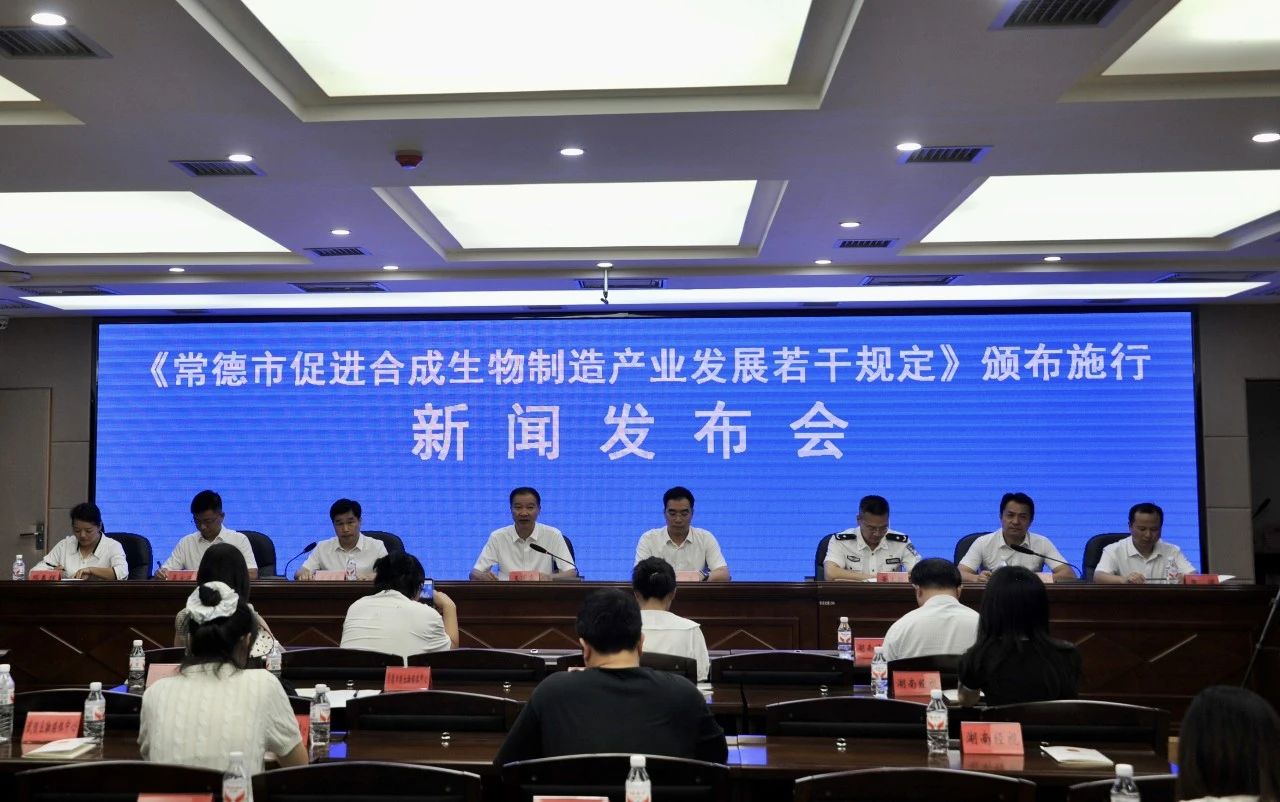 8月25日下午,《常德市促进合成生物制造产业发展若干规定》(以下简称《规定》)颁布新闻发布会召开。市人大常委会副主任王苠睿、市政府副市长马骏参会。相关部门负责人现场回答媒体记者的提问。